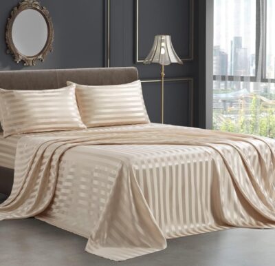 Lenjerie Damasc Polycotton 2 Persoane Crem satinat cu dungi, gama Hotel